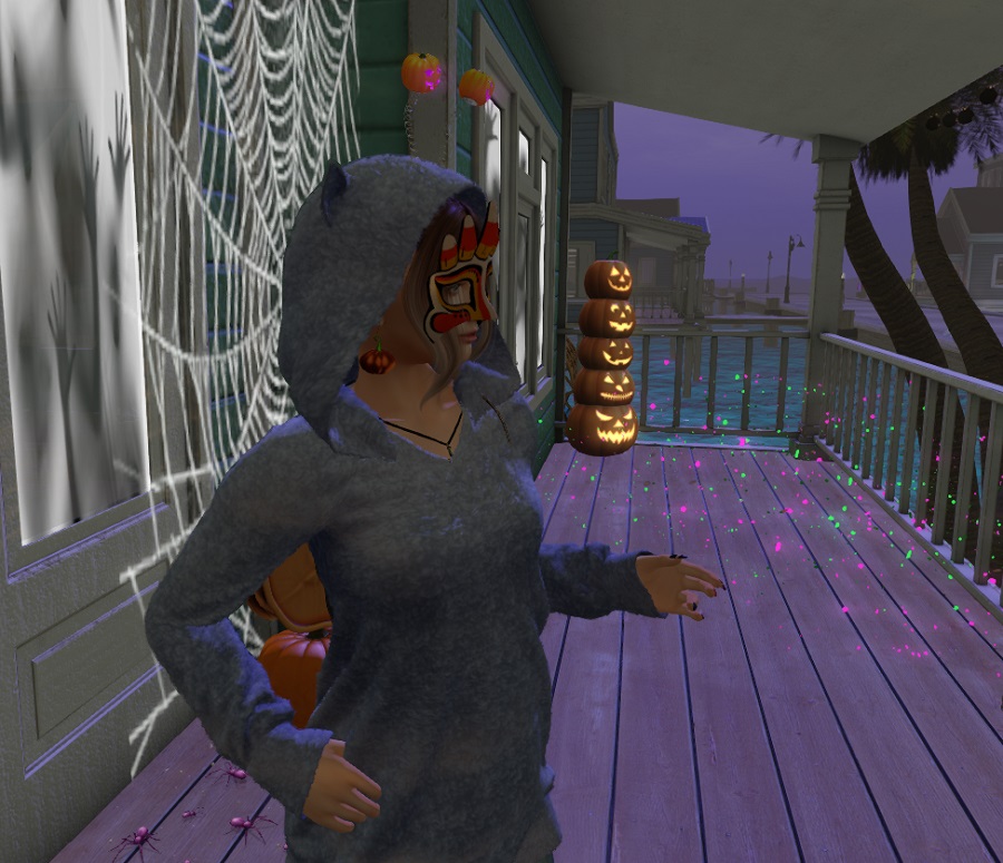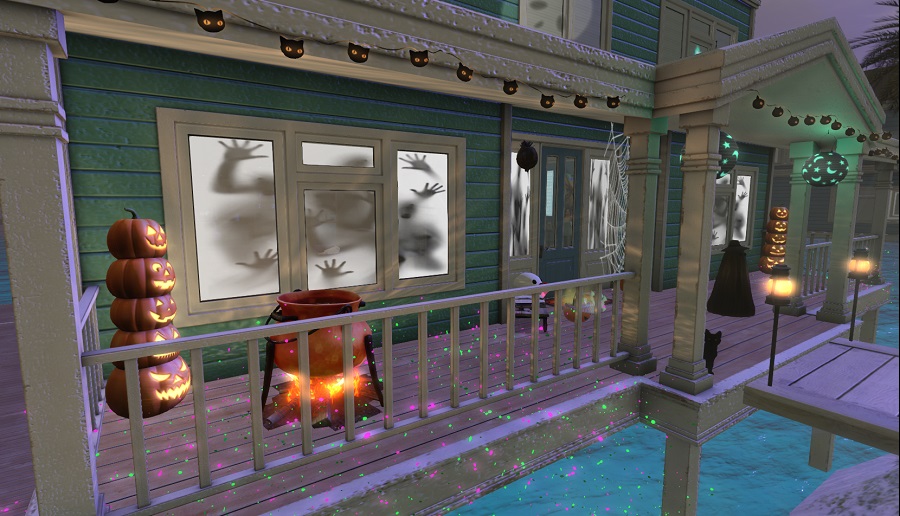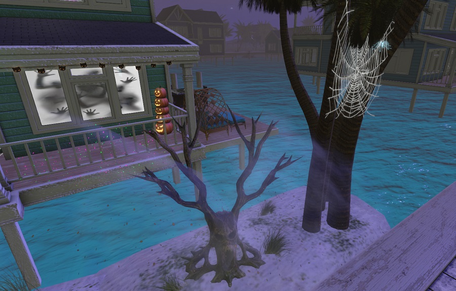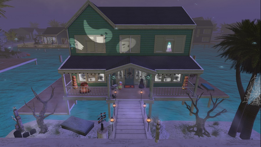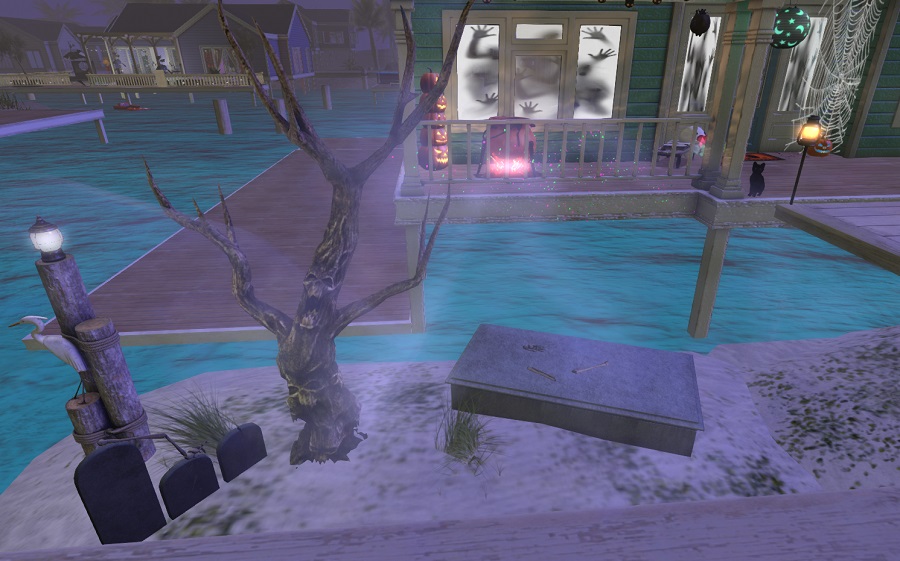 Earlier this year, I decided to switch things up and moved from a cabin home to a stilt house in a beach neighborhood in Second Life. Despite having lived here since February, I still don’t have the inside fully decorated and figured out. However, I knew that with Halloween coming around, I would need to spend some time adapting my collection of decorations to this new location.