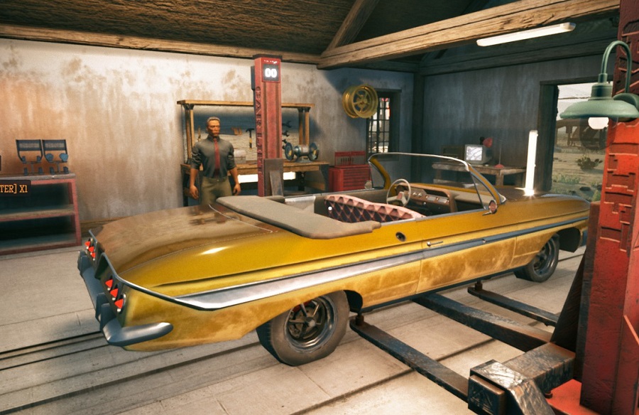 Then comes the service station side of the game. For some reason, you decide it’s a good idea to start servicing vehicles out of the small garage next to the station. This includes replacing tires, fixing broken mirrors, and buffing out scratches on cars – amongst other things.