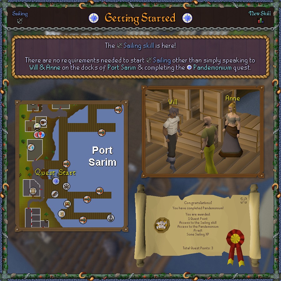 Even a new player can access sailing as the starting quest is just an easy walk to Port Sarim, which is located directly west of the starting town, Lumbridge.