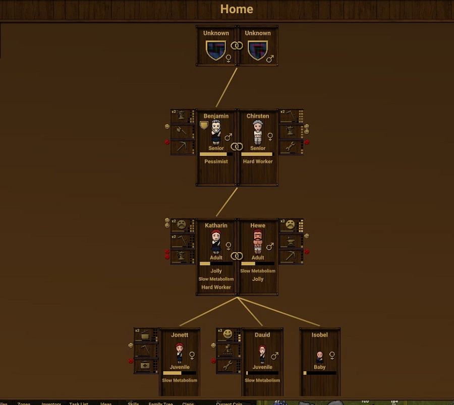 You start by making a family clan. Each member in the family has a personality with pros and cons, skills and weaknesses. They can learn new skills as they go along, and their personality traits directly affect everything about how they work, live, and interact with others.