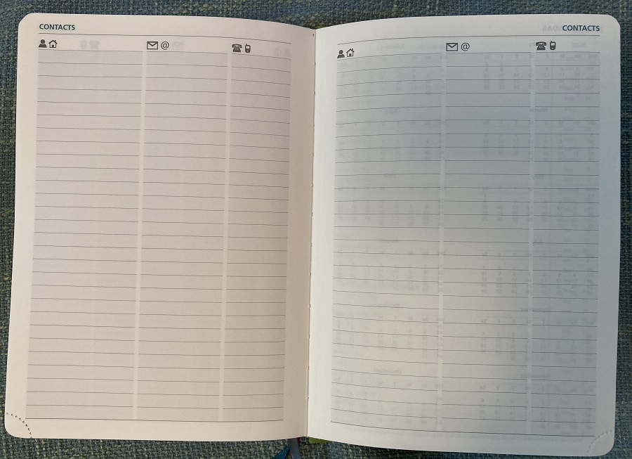 In the back, there are several sections for notes, contacts, and a little pocket on the inside of the back cover to stash things.