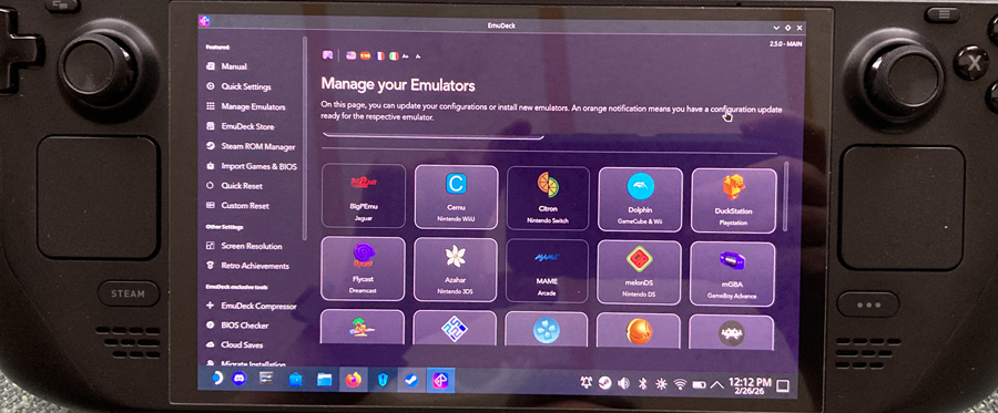 I chose to use EmuDeck for no particular reason over RetroDECK. It was just the one I found the how-to video for, I think. Following this video, I was able to get everything set up and running fairly quickly: