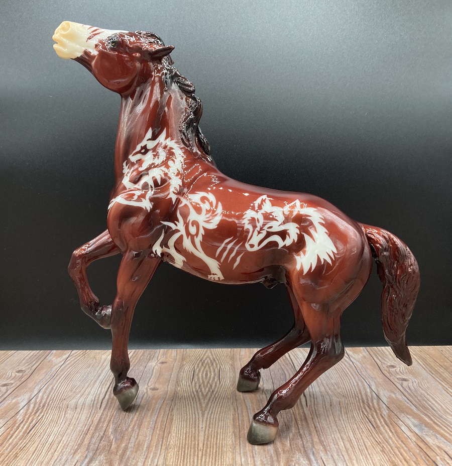 Beowulf was the Halloween Breyer Traditional horse for 2024. While I really like the idea and design, there was some talk on the Breyer forums that noted the wolves used here might have been taken from pre-existing artwork of another source (a kind way to say plagiarized). I don’t know if this is true or not, but the in examples and proof shown on the forums, the designs were quite similar.
