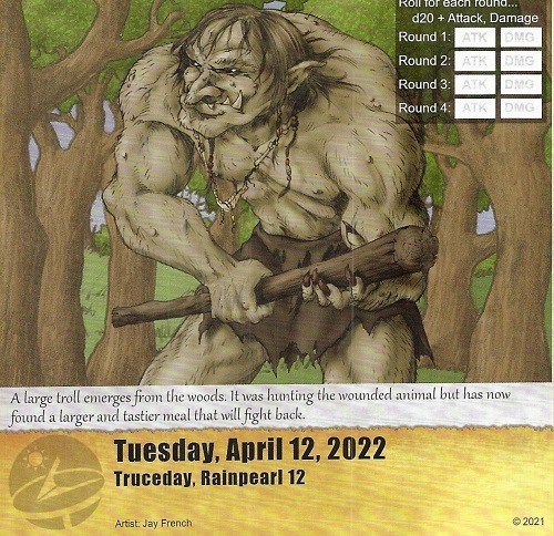 Tsavani didn't need it though. I had a string of incredible rolls today and she was able to stun and take the troll down without breaking a sweat or using outside abilities. She earned 8 gold from the fight, too!