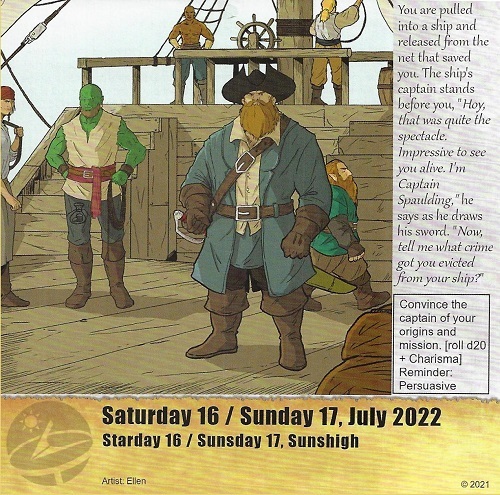Charisma isn't Tsavani's strong point, and it took a couple tries (and a 3 gold bribe) to talk herself out of this one. At least the captain finally listened.