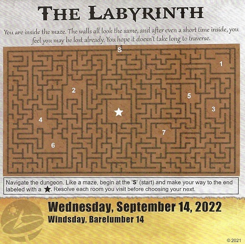 I'm not sure what I expected but every single spot on this map was a trap of some sort. From giant boulders, blades in the wall, crumbling floors to pressure plates. Thankfully, Tsavani had a +3 to all rolls today and most of them focused on DEX and other bonuses - like Danger Sense - that she has. Even so, she lost 2 health moving through the labyrinth. Not terrible, considering.