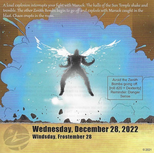 Welp, looks like Maruck failed his DEX roll. Tsavani, however, did not. She got her DEX bonus, plus Danger Sense bonus plus her Chi ability to Meditate and add more to her DEX.